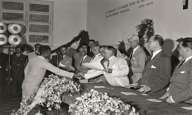 Sem dúvida, a Escola de Pesca do Abrigo do Cristo Redentor se constituiu numa “experiência singular no âmbito do ensino industrial do Brasil” ( Alves, 2012, p.126), mas o amplo apoio e a colaboração recebidos do governo 11 não se deveram apenas a isso. Como foi abordado, a EPDV possuía uma proposta assistencial voltada para a classe de pescadores e suas famílias na ilha da Marambaia, um projeto educacional destinado aos filhos menores de pescadores locais e de diversas outras regiões do país e um discurso afinado com a ideologia estadonovista ( Figura 19). Dessa forma, a Escola de Pesca do ACR cumpria seu papel formando artífices pescadores, trabalhadores de um “Brasil real”, que contribuiriam para o esforço coletivo em prol do desenvolvimento socioeconômico do país moderno e harmonioso propagandeado por Vargas.