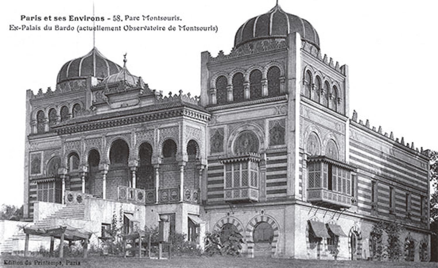 A edificação ficou conhecida por abrigar as instalações do Observatório de Paris a partir de 1868, mas, antes disso, foi projetada pelo arquiteto francês Louis-Étienne Alfred Chapon (1834-1893) para integrar o pavilhão da Tunísia, o “Palais du Bardo”, durante a Exposição Universal de 1867, em Paris. Ao término da exposição, o pavilhão do observatório foi adquirido pela cidade de Paris, em 1868, e o monumento foi reconstruído em 1869 pelo arquiteto Gabriel Davioud em uma colina do Parc Montsouris. 4