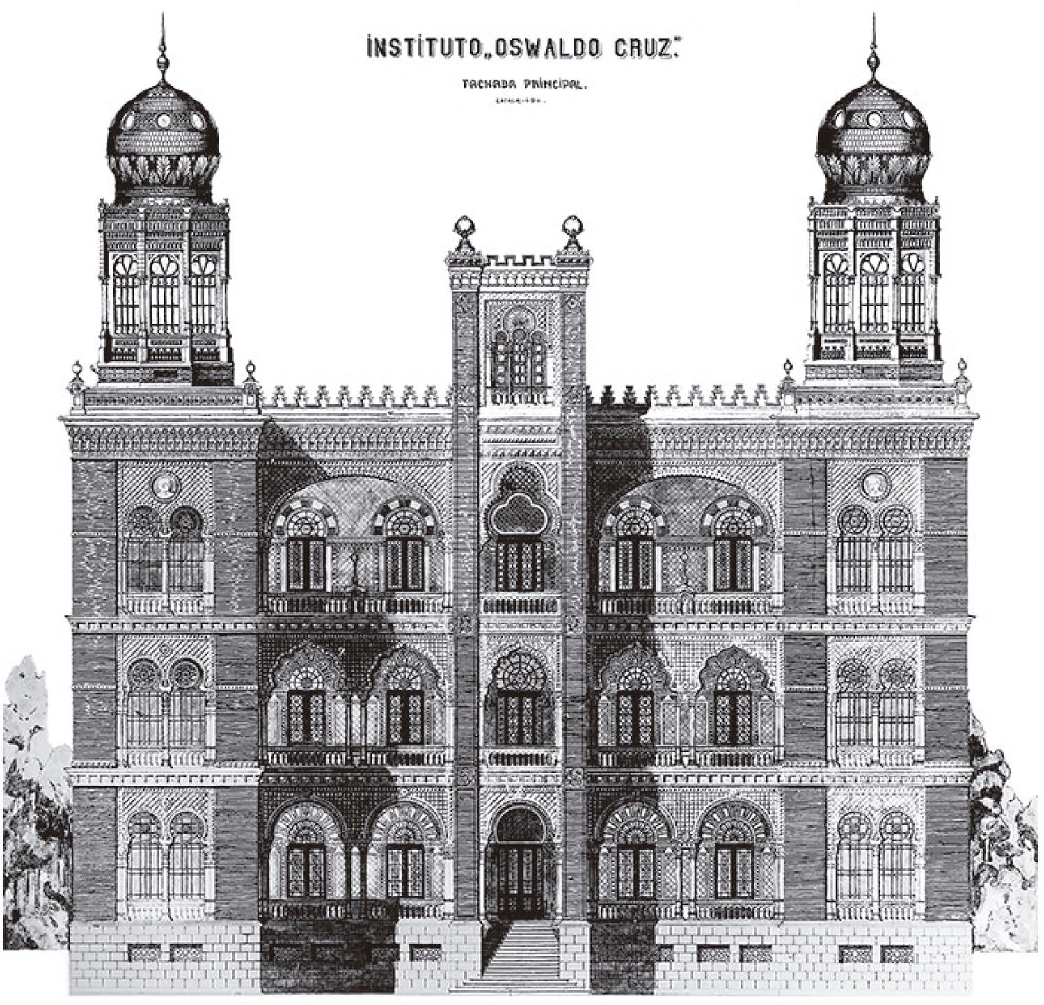 Ali surgiria uma das maiores instituições de pesquisa em saúde da América Latina. A história de seu desenvolvimento se confunde com a própria história da cidade do Rio de Janeiro, que, nos primeiros anos do século XX, passaria por uma urbanização expressiva. Aliado a todo esse crescimento, tendo Pereira Passos, entre 1902 e 1906, à frente da prefeitura da então capital federal, vemos a consolidação da arquitetura eclética em nossa cidade ( Benchimol, 1990), em que tecnologias contemporâneas, como eletricidade, gás encanado, sistemas de distribuição de esgoto e de água limpa, e o uso de materiais como ferro, cimento e vidro, conviveriam com estilos do passado que deram origem a novas nomenclaturas, como o neogótico, o neogrego, o neoárabe, ou mesmo o neomourisco, que seria usado como linguagem arquitetônica no principal edifício do Instituto Oswaldo Cruz. Este artigo conta a história de seu projeto, influências e construção, bem como analisa o contexto urbano em que se deu sua implantação na cidade do Rio de Janeiro. Conclui-se o estudo discorrendo sobre a mudança de mentalidade no campo do patrimônio que contribuiu para o processo de reconhecimento do Pavilhão Mourisco como valor cultural e científico.