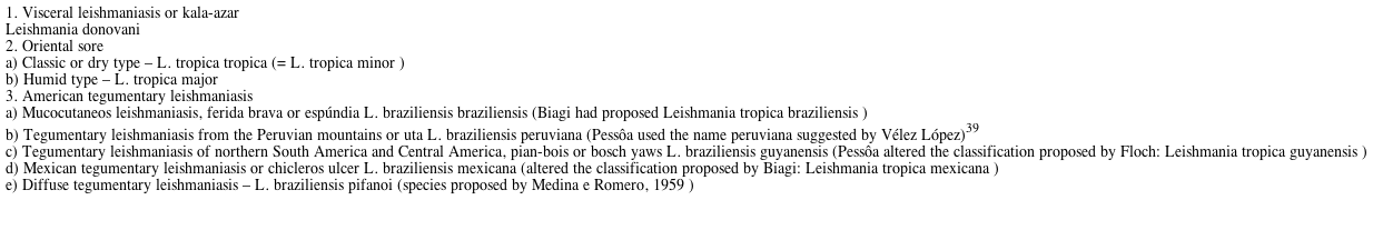 PESSÔA, Samuel Barnsley. Classificação das leishmanioses e das espécies do gênero Leishmania. Arquivos de Higiene e Saúde Pública , v.26, n.87, p.41-50. 1961.