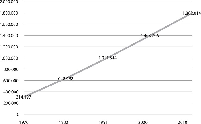Na segunda metade da década de 1970, as multinacionais começaram a se instalar em Manaus, e a ZFM tornou-se um vigoroso polo de atração de populações rurais do Amazonas e de estados vizinhos. A explosão demográfica (Gráfico 1) e o consequente deficit habitacional levaram as elites dirigentes e o governo a destruir extensas áreas de floresta para a construção de conjuntos habitacionais (Silva, 2011, p.521). Dessa forma, surgiram, a partir da década de 1960, os conjuntos da Cooperativa de Habitação do Amazonas (Cohab/AM) nos bairros Raiz, Flores e Parque 10.