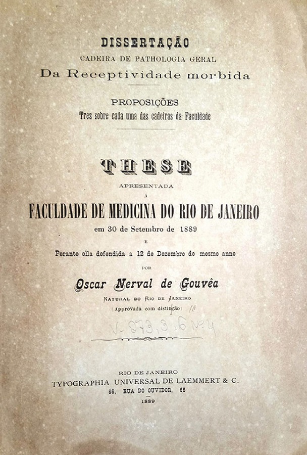 Although a more profound discussion on this aspect is not included in the scope of this paper, Gouvêa can undoubtedly be considered a Positivist as well as a Spencerian: Comte and Spencer were the first authors he listed in the bibliography of his medical dissertation. Furthermore, in my view his pervasive emphasis on the use of mathematics and quest for unity between the inorganic, organic, and social realms that are visible in his texts confirm this categorization. At that time, philosophy was considered to have to become “scientific;” in other words, it had to recognize the “unity of nature,” a huge and unbroken chain of causes and effects ( Barros, 1986 , p.107). The three graduate courses Gouvêa participated in during his lifetime may also express this view: engineering (inorganic level), medicine (organic level), and law and social sciences (social level) combined to provide a broader, encompassing, personal understanding of the world. Gouvêa’s somewhat speculative tendencies can be observed from the very beginning of his academic career. In 1879 he published the article “Função cosmogênica do éter” (“The cosmogenic function of ether”) in the Revista de Engenharia ( Siqueira, 2014 ).