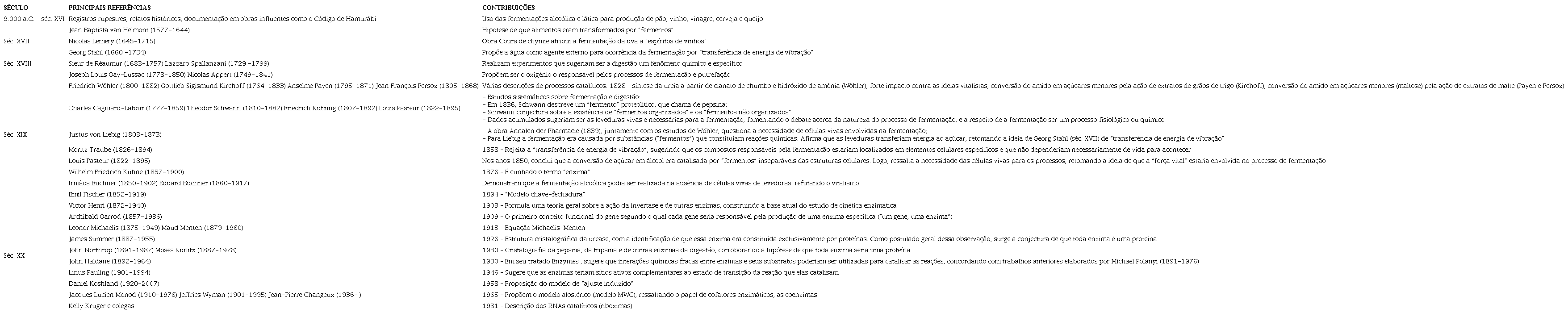 O Quadro 1 sintetiza os principais eventos relacionados à construção histórica do conceito de enzimas, evidenciando a relevância dos parâmetros históricos para a apreensão crítica e contextualizada da construção científica do conceito.