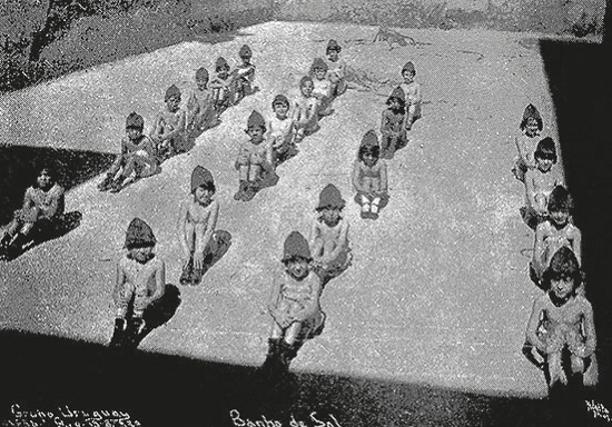 As lições proferidas no curso encontraram corolário nos debates científicos em voga à época. Foram exemplares as prescrições ressaltadas por Oscar Clark quanto aos benefícios do leite à saúde dos escolares, bem como das práticas dos banhos de ar e de sol10 como tratamento “eficiente” e moderno no combate ao raquitismo e no aumento de imunidade nos casos de tuberculose óssea e outras afecções cirúrgicas em crianças ( Clark, 1930 , p.155). Nesse caso, tal discussão visava evidenciar os estudos empreendidos em vários países acerca dos benefícios de uma exposição moderada ao sol, assim como dos efeitos positivos de sua adoção nas escolas. Aulas ao ar livre e de ginástica, colônias de férias e prática de atividades físicas foram, entre outras, propostas como ações articuladas às aulas das disciplinas de puericultura e educação higiênica ( Camara, 2004 ).