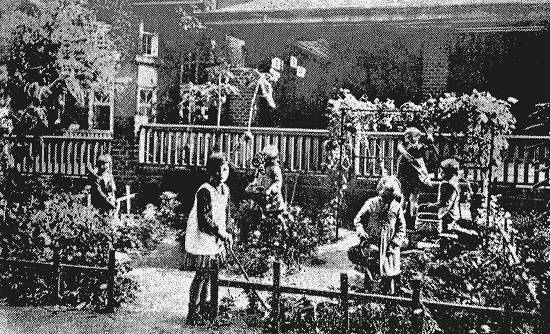 O livro apresenta 639 páginas, sendo algumas preleções ilustradas com fotografias e gráficos, assim como fez o inspetor médico Massilon Saboia no texto “Que se tem feito no mundo civilizado para se proteger a criança, de 2 a 6 anos de idade? A mortalidade neste período. Causas e meios de combatê-la”, em que, além de apresentar suas impressões sobre as visitas realizadas a instituições dedicadas à infância de vários países, incluiu fotografias alusivas a essas iniciativas, a exemplo da Pestalozzi-Fröebel-Haus, em Berlim ( Figura 1 ). As 31 fotografias mostradas no livro registram as ações desenvolvidas em países como EUA, Itália, Alemanha e México, bem como as medidas instituídas nas escolas e na clínica médica escolar com a reforma da instrução pública do Distrito Federal (1927-1930). Flagram-se registros do atendimento médico e dentário, das “modernas” e higiênicas instalações da Clínica Médica Escolar, da distribuição do prato de sopa e de leite e do pelotão de saúde pelas escolas do Distrito Federal. A presença das fotografias parece-nos significativa, tendo em vista a preocupação de associar os registros das iniciativas, inclusive em outros países, às proposições apresentadas nas seções do curso quanto aos benefícios e possibilidades para a saúde dos escolares.