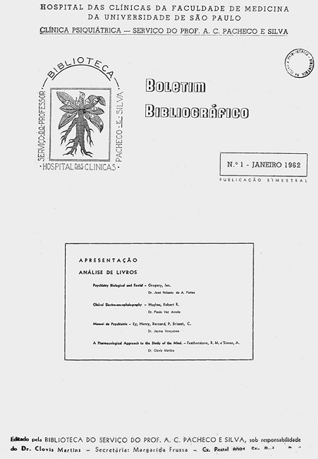 O Boletim Bibliográfico da Clínica Psiquiátrica da Faculdade de Medicina da Universidade de São Paulo (FMUSP) criado em 1962, foi inicialmente destinado à publicação de resenhas de livros ou revistas do campo psi feitas por psiquiatras da própria instituição. Logo em seu terceiro número adquiriu novo status , tornando-se o Boletim da Clínica Psiquiátrica . Seu conteúdo foi ampliado e diversificado, sendo formado por artigos originais, conferências, aulas e notícias da época, o que o tornou uma publicação de referência para seu tempo ( Amaro, 2003 ).