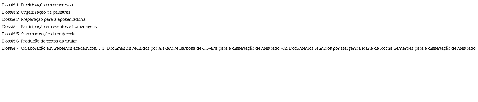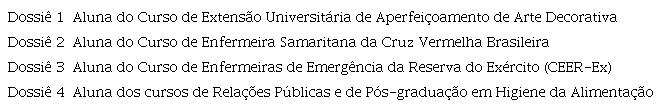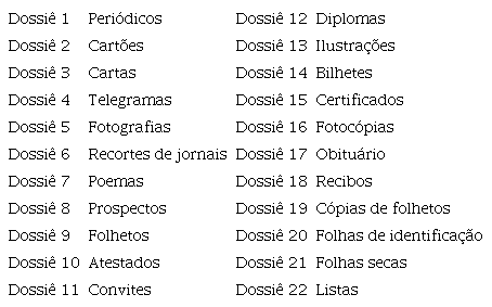 Abaixo estão apresentados quadros com o conteúdo dos quatro grupos de documentos e seus respectivos dossiês.