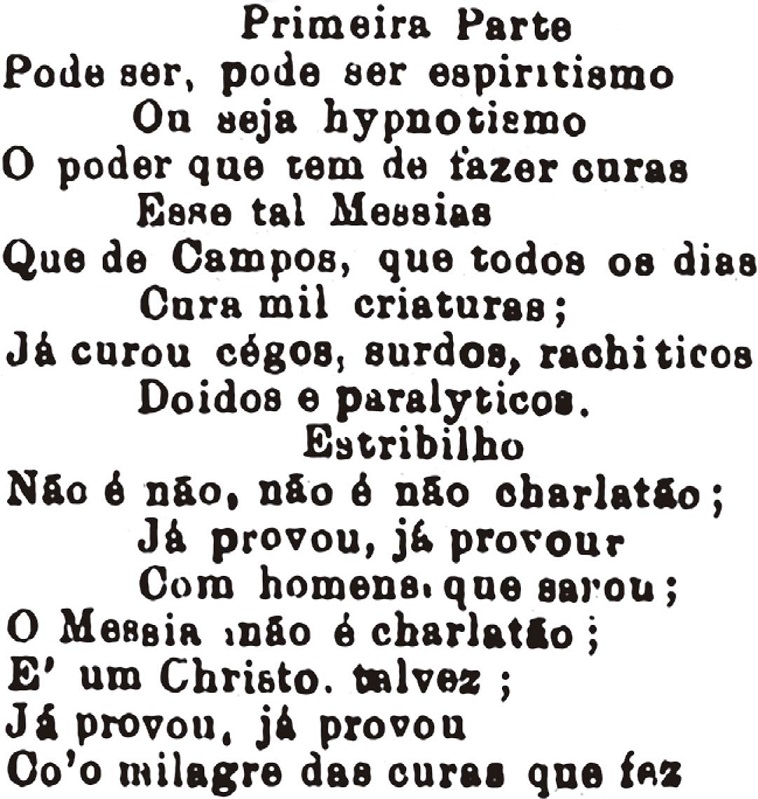 O trecho “pode ser espiritismo, ou seja, hipnotismo” mostra a dúvida geral que pairou, resultado das diferentes versões sobre a figura. Independente da explicação, para muitos o fato era um só: “todos os dias cura mil criaturas”, enfermos dos mais diversos, prova suficiente de que não era um charlatão.