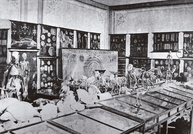 Dentro de las instituciones educativas estos materiales eran organizados en armarios y vitrinas para la visualización directa, desplegados en mesas y estanterías o colgados en las paredes ( Figura 1 ). En el caso de los colegios preparatorios, hacia 1890, mantenían una dotación mínima de materiales para todas las áreas de la historia natural, sin embargo, la configuración y devenir de estos espacios fue ciertamente disímil. Los establecimientos sobrellevaron varias dificultades para equipar y conservar los gabinetes científicos, sufrieron desatenciones de varios años, demoras en las remesas, escases de espacio físico, problemas de mantenimiento y falta de personal idóneo, dificultades económicas para la renovación de los materiales, entre otros (cf. García, Mayoni, 2019). Los informes institucionales de la época dan cuenta cómo la actuación de docentes y directivos determinó en gran medida, con su capacidad de agencia y de demanda, las posibilidades de desarrollo de la enseñanza en cada lugar.