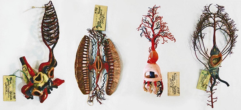 Según el botánico Cristobal Hicken (1923), Carlos Berg habría cambiado radicalmente el método de enseñanza en el aula, donde los materiales “inundan ahora la mesa” ( Hicken, 1923, p.125). Con la llegada de Carlos Berg se hace visible la importancia otorgada al uso de los objetos y al estudio de la naturaleza en clave comparada. En la producción de textos de enseñanza por él publicados (Berg, 1887, 1889, 1890), es indicado el estudio sistémico y comparado de los diferentes grupos de especies: la anatomía y fisiología comparada (órganos, aparatos y funciones), fórmulas y diagramas florales de diferentes clases y tipos, los ejercicios de determinación, indicados tanto para los animales como para los vegetales y minerales, entre otros. Con esta modalidad fueron ponderados en las clases los dispositivos visuales y colecciones científicas que ofrecían imágenes en series, colecciones de esqueletos y taxidermias, modelos de anatomías comparadas (sistemas circulatorios, nerviosos, digestivos y respiratorios de los diferentes grupos de animales), muestrarios de plantas, semillas, minerales, rocas o fósiles, todas organizados según los sistemas de clasificación de la naturaleza animal, vegetal y mineral adoptados y enseñados en la época ( Figura 3 ).