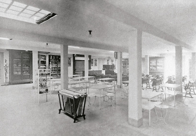 Los cambios en las modalidades pedagógicas, de una enseñanza más descriptiva y comparada hacia una enseñanza más experimental generaron en los gabinetes de los colegios nacionales nuevos espacios de “laboratorio” con mayor presencia de instrumentos y lugar para las mesas de disección y observaciones microscópicas. Por ejemplo, a comienzos del siglo XX el gabinete del Colegio Nacional de Buenos Aires se llamó “Laboratorio de Historia natural” ( Figura 4 ) y un inventario, con registros entre 1903 y 19011, tiene inscripto una importante cantidad y diversidad de instrumentos. Entre ellos, microscopios, balanzas, estufas y mecheros, instrumental de vidrio y porcelana, micrótomo, aparatos de fisiología experimental como el cardiógrafo de Marey, el esfigmógrafo de “Dudgeon”, un miógrafo vertical, elementos adquiridos para la realización de diversos experimentos sensoriales de oído, vista y olfato y otros instrumentos el desarrollo de la histología y la vivisección (Laboratorio…, 1903).