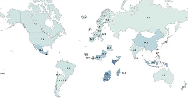 A few cities mostly avoided the flu, but it took a terrible toll in most parts of the country. As shown in Figure 2, historical and updated accounts of mortality rates by epidemiologists in the Bulletin of the History of Medicine show rates of 6.8 per thousand in Brazil, comparatively low compared to Mexico, Chile, countries in Africa, and nations in Southern Europe (most above 12 deaths per thousand; cf. Johnson, Mueller, 2002; Patterson, Pyle, 1991). In developing countries, influenza killed at highly varying rates, according to the statistics assembled. Nations and colonies in Africa and the South Pacific had the highest death rates (between 20 and 60 per thousand). Other countries like Mexico (20 per thousand), China (14.2 per thousand), or Chile (11 per thousand) also had double-digit figures, but none as high as South Africa (44 per thousand) or Indonesia (30.4 per thousand). Mortality estimates of influenza in Brazil from 1918-1919 also look low compared to the rates of densely populated cities in the United States, such as Boston (7.93), New Orleans (8.79), New York (10.38), and Pittsburg (10.04) ( Crosby, 2003). The data may have conveyed the message that even during the worst of pandemics, Brazil, with its relatively underfinanced health and sanitation system, somehow avoided the worst.