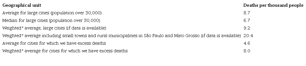 In fact, the 1918-1919 pandemic was deadlier than previously assumed. We compile new estimates of mortality rates for 1918 in Brazil’s largest cities. Our estimates of average deaths per thousand in cities with more than thirty thousand people fluctuate between 8.7 and 9.2 per thousand ( Table 1). Additionally, previously published mortality rates often exclude the majority of the country’s population. In 1920, about 80% of Brazil’s population lived in small towns and rural municipalities. 3 Outside of the big cities, we discover higher mortality rates. Hundreds of towns and rural municipalities in São Paulo and Mato Grosso with accessible data show a weighted average death rate of 20.4 per thousand, an alarmingly large number. Our refined estimates of death rates, based on a broader base of historical sources that include urban populations and the higher toll of rural areas, demonstrate that only the most conservative estimates of total deaths align with our calculations. Thus, based on mortality rates, we calculate that in 1918, influenza killed 23,000-31,000 in the largest cities. At that time, Brazil’s total population was about thirty million. In smaller towns and rural municipalities, another 183,000-556,000 died from the Spanish flu. In sum, we posit 266,000-587,000 deaths during this pandemic. 4 This was Brazil’s deadliest pandemic yet. But when measured by the percentage of deaths, Brazil’s battles with cholera and smallpox were likely worse ( Cooper, 1975).