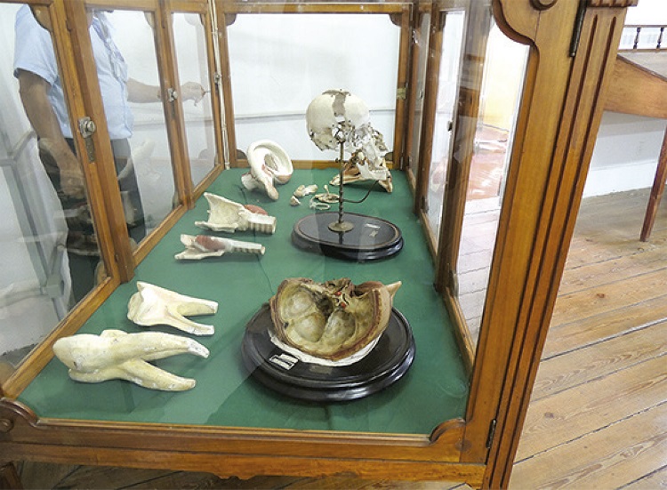 Sobre o provável uso de cadáveres no final do século XIX, uma curta anotação referente a uma lição do dia 9 de março de 1894 menciona a palavra “cadavérico”. Outro documento que reforça essa possibilidade é um termo de contrato de 1895, que expressa a solicitação de armários de madeira e duas mesas de mármore para o Anfiteatro de Anatomia Humana, que deveriam ser iguais às da Faculdade de Medicina do Rio de Janeiro, provavelmente para trabalhos de dissecação. Quanto à mesa de mármore, uma com as mesmas caracterísricas descritas no documento se encontra em exposição no MPh. No entanto, nenhuma outra informação foi encontrada sobre o uso de cadáveres nas aulas de anatomia.