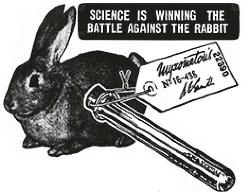 WARD, Colin. Myxomatosis to control rabbits. CSIROpedia Achievements, 21 mar. 2011. Disponível em: https://csiropedia.csiro.au/myxomatosis-to-control-rabbits/. Acesso em: 4 jan. 2021.