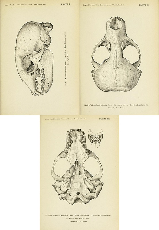 TRUE, Frederick W.; LUCAS, Frederic Augustus. On the West Indian Seal (Monachus Tropicalis, Gray). In: Smithsonian Institution. Annual report of the Board of Regents of the Smithsonian Institution showing the operations, expenditures, and condition of the institution for the year 1884, Part II. Washington: Government Printing Office, 1885. p.331-338.