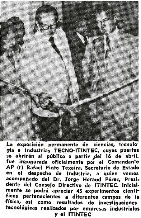 The official inauguration of TECNO-ITINTEC took place on March 23, 1979, as mentioned in Expreso and by Jorge Heraud, with a public opening on April 16 of that same year. Both media appearances corroborated the museum’s opening date, which is crucial for future research on determining whether TECNO-ITINTEC was the first interactive science museum in Latin America.
