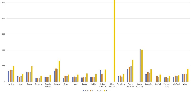 De fato, analisando a resposta hospitalar existente nas primeiras três décadas do século XX, tal como sucedia com os médicos, também no que concerne aos hospitais, Lisboa, Porto e Coimbra eram as cidades mais bem apetrechadas, o que não significava que fossem suficientes. Aliás, no primeiro Congresso da União Nacional, em 1934, foi abordada a falta de resposta hospitalar nas zonas urbanas (Almeida, 2017).