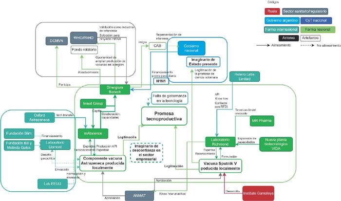 La coordinación entre Estado y sector privado implicó una convergencia de expectativas: el horizonte de soberanía sanitaria movilizado desde el Estado, embebido en esta promesa y convertido en compromiso de acción, requería de la coordinación del sector privado y sus capacidades en un rol explícito y activo para la materialización de la promesa en una tecnología vacunal funcional al contexto local.