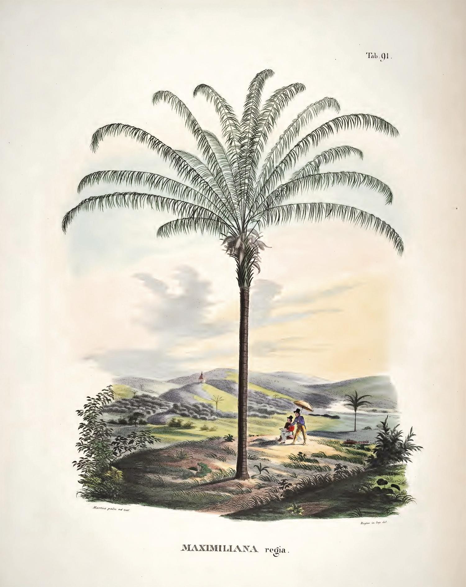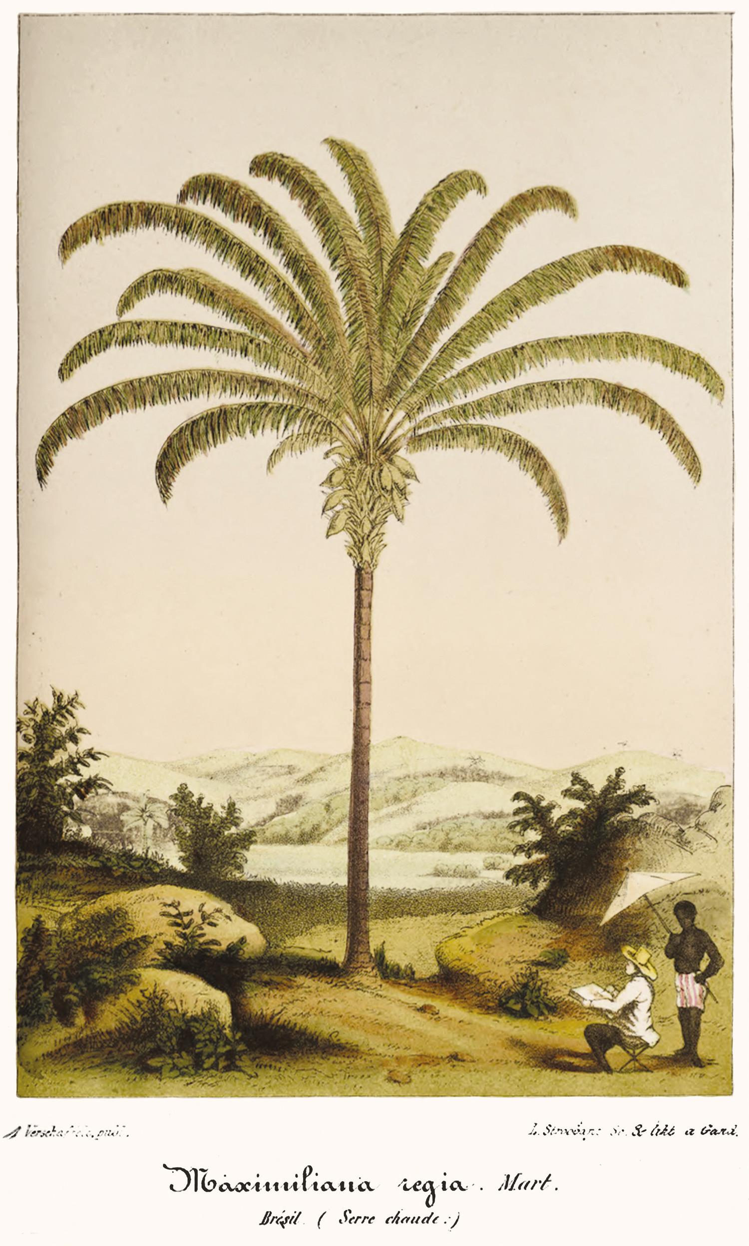 In one of these illustrations, Martius himself appears depicting a palm tree named MAXIMILIANA REGIA,5 a visible tribute to Maximilian I, who had sponsored his Brazilian expedition (Figure 1).