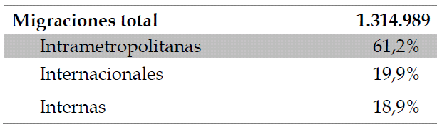 Con este primer acercamiento cuantitativo a las migraciones intrametropolitanas, se ha propuesto complejizar la mirada acerca de los cambios demográficos que afectan a la región. Si bien es importante tener en cuenta el crecimiento total en la cantidad de habitantes, observar sólo esa cuestión puede ocultar otros procesos también significativos. Por ejemplo, la Ciudad de Buenos Aires desde mediados del siglo XX posee una población cercana a los 3 millones de habitantes, sin embargo, aunque ese número se mantenga relativamente estable, en sólo un período de 5 años, 210.341 personas se mudaron hacia municipios que forman parte de la metrópoli, mientras que otras 122.374 hicieron el recorrido inverso. Con esto se ilustra que la movilidad residencial actualmente es un proceso al cual hay que otorgarle interés, ya que puede influir en la composición poblacional y en la propia estructura urbana.