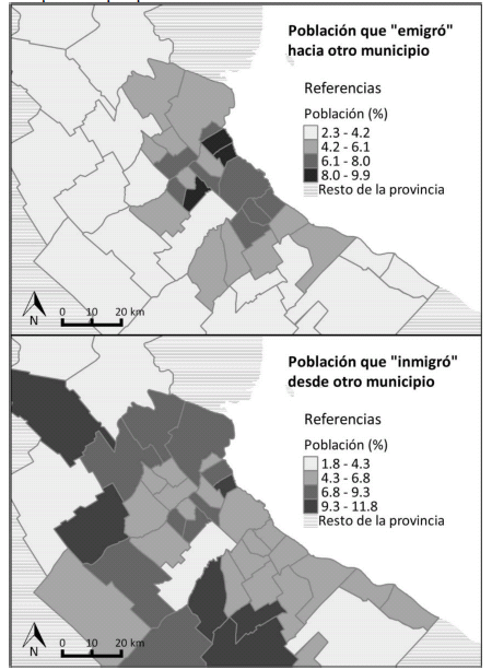 Por otra parte, el censo subregistra este proceso. Se captan sólo cambios de residencia que exceden los límites de los distritos, dejando así de lado a aquellos movimientos intramunicipales.9 Además, únicamente se posee información sobre el municipio de origen pero no las condiciones en las que allí vivía, por lo tanto, tampoco se puede saber si la movilidad residencial estuvo relacionada al mismo tiempo con un proceso de movilidad social, ya que sólo se poseen datos sobre la situación socioeconómica y habitacional de las personas del año 2010, es decir, una vez ya mudadas.