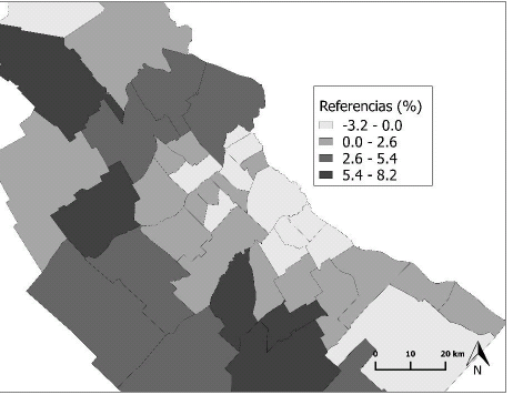 Sin embargo, dicho periodo no estuvo exento de continuidades con el neoliberalismo, lo cual se plasmó fuertemente en el plano urbano. En ese contexto macroeconómico brevemente descripto, el sector de la construcción tuvo un papel fundamental. Parte de los excedentes generados por el crecimiento económico se invirtieron en la construcción de vivienda en altura en áreas centrales y de barrios cerrados en la periferia metropolitana, lo cual generó una demanda importante de suelo urbano y, como consecuencia de un mercado inmobiliario escasamente regulado, se generó un aumento exponencial de su precio (Baer, 2012). A pesar de la mejora de determinados indicadores sociales, las desigualdades urbanas se profundizaron, ya que los sectores populares y parte de las clases medias se enfrentaron con mayores obstáculos para acceder a la vivienda y al hábitat a través del mercado inmobiliario formal. No obstante, durante el periodo analizado, el Estado desplegó un importante plan de construcción de viviendas -generalmente ubicadas en las periferias urbanas - para hogares de bajos ingresos, aunque no logró cubrir por completo el déficit habitacional (Del Río, 2014). Aquí no se pretende realizar un análisis exhaustivo de los cambios a nivel histórico-estructural ocurridos durante los últimos años en la RMBA, pero las mencionamos para reconstruir el contexto urbano en el cual la movilidad residencial se produce. La fuente de datos posee limitaciones para relacionar directamente el contexto urbano con la movilidad residencial, sin embargo, tener en cuenta algunas de los rasgos generales de la urbanización y sus cambios en los últimos años posibilita plantear algunas interpretaciones acerca de los desplazamientos residenciales.