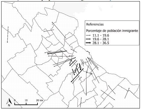 Por último, cabe destacar que la movilidad residencial está vinculada con otro tipo de movilidades. Por un lado, con las migraciones internacionales. Los migrantes extranjeros tienden a ser más móviles y a abandonar la ciudad central para ubicarse en partidos del oeste y sur del conurbano, es decir, que se concentran en trayectorias descendentes en términos de localización. Por otra parte, en algunos municipios hemos encontrado algunos indicios de asociación entre la movilidad cotidiana y la residencial, ya que gran parte de las mudanzas se realizan involucrando a la ciudad central o entre municipios vecinos y pertenecientes al mismo corredor metropolitano, es decir, en cierto sentido siguen el mismo patrón de los desplazamientos cotidianos.