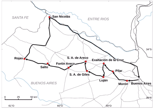 El objetivo de los viajes del gobernador no radicaba solamente en los efectos que produciría en la campaña sino también en la ciudad de Buenos Aires. No era casual que los relatos de cada día del periplo fueran impresos en los diarios principales de la capital. Si existía desconfianza de los campesinos hacia los citadinos, se podría decir que había temor de estos últimos en relación con los primeros. Cuando Obligado llegó de su travesía rural, ante un masivo público que había acudido a recibirlo y en medio de un improvisado discurso, prometió “que el estado de la campaña era el más tranquilo, y que ningún caudillo por más que quisiese conseguiría dominar jamás en nuestra tierra”.13 Esta brecha entre hombres del campo y de la ciudad era la que los gobernadores, con sus viajes, intentarían subsanar a través de la educación y el progreso material que fomentaban. Otro de los propósitos no explícitos de los viajes radicó en la intervención política y la vigilancia. Se buscaba confirmar y profundizar lazos con aliados políticos locales. Pero también, confraternizar cuando era posible, negociar cuando la situación era compleja e imponer cuando la complejidad se tornaba excesiva. Como veremos más adelante, cada localidad tenía su historia, su vida social y política particular, pero a nivel general, se componía de una parcialidad más afín a la actualidad -como se decía por entonces al oficialismo- y otra más proclive a disentir con el gobierno.