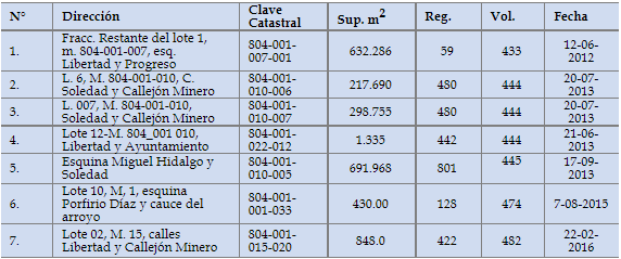 Por último, dentro de las fuentes primarias se hizo consulta del Archivo Público de la Propiedad y el Comercio municipal (H. Ayuntamiento de La Paz) para detectar la adquisición de casas y edificios antiguos de la localidad rural estudiada. Esto brindó elementos de reflexión respecto al fenómeno inicial de gentrificación. Así, en el Archivo fueron ubicados los principales inversionistas adquirientes de propiedades en El Triunfo, lo que permitió identificar su superficie y ubicación. En ese proceso destacó como constante el brazo inmobiliario de Innovaciones Alumbra, de Tenaja Holdings. Posteriormente, fue revisada la página de internet de esta empresa, en la que se señala como su propietaria a la Sra. Christy Walton, emparentada con los Walton, una de las familias más ricas del mundo. Esto fue confirmado por las personas entrevistadas en la comunidad. El único inversionista distinto a Tenaja Holdings fue un integrante de la familia hotelera Coppola en Los Cabos y esposo de una de las promotoras del lugar.