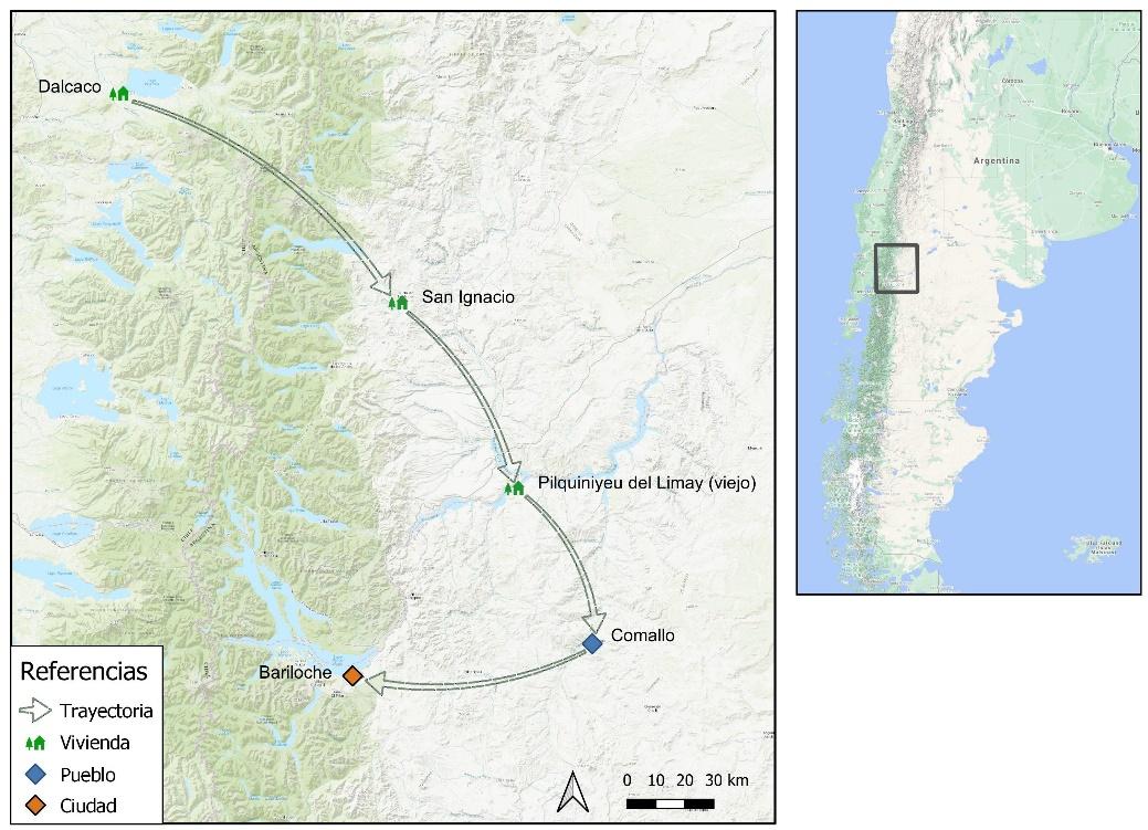 Se trata de desplazamientos, entonces, que dan forma a largas trayectorias de movilidad, unas que se desarrollan desde la incorporación de los territorios del sur y su población a los Estados argentino y chileno hasta la –en muchos casos reciente– constitución formal como comunidades mapuche que demandan un territorio propio. Es el amplio marco temporal en que se despliegan estos procesos socio-territoriales el que nos permite acercar la mirada tanto a las territorialidades del pasado como a las territorialidades del presente. A las de las personas, familias y comunidades obligadas a desplazarse, o a convivir con la amenaza de serlo, pero también, del otro lado, a las de los capitales aplicados a las actividades agropecuaria, comercial, forestal, hidrocarburífera y turística y a la especulación inmobiliaria, a las de los terratenientes, a las del Estado en sus diferentes niveles. El análisis que nos convoca, en esa aproximación, es el de los particulares lugares que se producen y conectan a través de tránsitos desplegados de manera individual y/o colectiva, en determinados momentos históricos en los que arraigan los condicionamientos y las motivaciones que los guían, desde una perspectiva histórico-antropológica.[2]