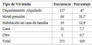 Es en este contexto que los migrantes senegaleses deben encontrar una solución para la problemática habitacional. Debido a las dificultades para acceder a una vivienda de alquiler, ya sea por no contar con las garantías que se solicitan a tal fin, por los prejuicios que pesan sobre este colectivo, pero principalmente por los altos costos que ello implica, han optado por el alquiler de habitaciones en hoteles pensión, donde no se solicitan garantías y los costos no son tan altos. De acuerdo con el relevamiento, el 47% de ellos vive en departamentos alquilados entre varios compatriotas, mientras que un 31,7% vive en habitaciones de hoteles. Cerca de un 13% vive en habitaciones en casas de familias y tan solo un 7,7% vive en casas.