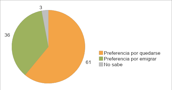 Por último, otro resultado intrigante, que merece un análisis con mayor profundidad es que, si bien la mayoría de las personas entrevistadas declaraban sentirse satisfechas o muy satisfechas con sus vidas, seis de cada diez preferiría residir en el exterior, y alrededor de un tercio considera que será algo probable que ello ocurra dentro de los próximos dos años.