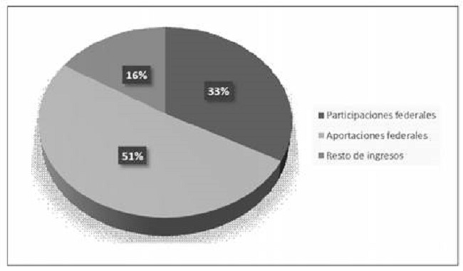 Respecto a los ingresos que financian estos gastos, éstos tienen dos orígenes:1)ingresospropiosqueincluyenlosimpuestosrecolectadosporcada gobierno estatal, las cuotas y aportaciones del seguro social y 2) las transferenciasdelgobiernofederalalosgobiernosestatales.Enpromediolosestados obtienen el 84 por ciento de sus recursos del gobierno federal a través de estas transferencias federales; y éstas pueden ser condicionadas a gastos específicosonocondicionadasaningúndestinoespecífico(Flamand,2006; Cuentas nacionales, Inegi, 2014). De esta manera, la dependencia de las entidades federativas hacia el gobierno federal es considerable, pues los estados no generan los ingresos suficientes para cubrir la mayor parte de sus gastos (Bonet y Reyes-Tagle, 2010; Bonet y Rueda, 2012; Velázquez-Guadarrama,2006).Losgobiernosestatalestienenasucargolarecolección deimpuestosdebaseimpositivamuylimitada,yelprocesodedemocratización que México avanzó durante la década de 1990 no cambió significativamente esta asignación de responsabilidades impositivas (Bonet y Rueda, 2012; Velázquez-Guadarrama, 2006). Aproximadamente sólo el 4,2porcientodelosingresostotalesdelosgobiernosestatalesprovienende losimpuestosrecaudados;ylaaltadependenciapresupuestariadelastransferencias federales hace que los gobiernos estatales no realicen esfuerzos seriosporelevarlarecaudacióndeimpuestosdebidoasuscostoselectorales y administrativos (Bonet y Rueda, 2012; Velázquez-Guadarrama, 2006). El Gráfico2muestralacomposicióndelosingresosestatalesportipodefuente de 1989 a 2014 (promedios para este periodo).