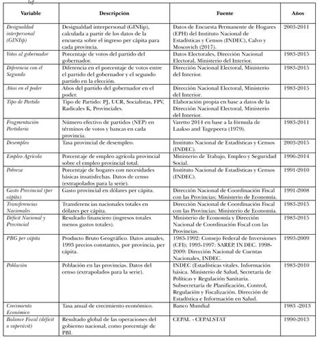 En primer lugar, este trabajo muestra que el efecto de los factores políticos sobre la desigualdad en el nivel subnacional se da a través de cambios en el mercado de trabajo (algo que también muestran Kelly y Witko, 2012, para el caso norteamericano cuando constatan la incidencia del «salario mínimo» sobre la desigualdad). Esto es muy relevante porque hasta ahora se consideraba que los niveles subnacionales tenían poca relevancia respecto de las características del mercado laboral. En segundo lugar, ilustra empíricamente los peligros, señalados más arriba, de asumir linealmente los postulados teóricos y los hallazgos de teorías válidas en el nivel nacional (en este caso la TRP) cuando se dan cambios de escala hacia el nivel subnacional. Creemos pertinente concluir la revisión de estos trabajos señalando tres cuestiones que nos parecen relevantes. En primer lugar, todos ellos usan como variables de control algunas variables socioeconómicas tales como población y necesidades básicas insatisfechas (Calvo y Moscovich 2017), desempleo, porcentaje de población de edad avanzada y población no blanca, producción manufacturera (Kelly y Witko, 2012), y PBI per capita e infraestructura sanitaria (Sátyro, 2013). Todas ellas son idénticas o muy similares a las utilizadas por los estudios que se ubican nivel nacional (ver, por ejemplo, Huber y Stephens, 2012, para América Latina, y Bradley, et. al., 2003, para los países desarrollados). Esto es, respecto de las variables socioeconómicas, estos trabajos usan también la estrategia del traslado del nivel nacional al subnacional.