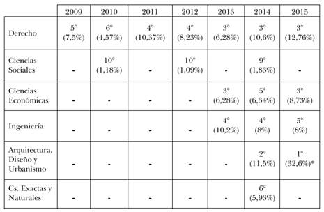 Esta lejanía social y política del PRO con el mundo de la política estudiantil de la UBA se manifiesta, además, en el poco interés que ha demostrado el partido en implantarse en esta universidad hasta hace apenas unos pocos años. Así, mientras en la UCA la inserción de sus militantes ocurrió muy tempranamente (como vimos, ya en 2004 un militante juvenil llegaba a la conducción del centro de estudiantes de la Facultad de Derecho), la llegada del PRO a la UBA se dio recién en 2008 y se centró fundamentalmente en la agrupación PRO-Derecho, la primera en ser creada, cuya primera lista se presenta en 2009. Mientras se presentaron listas en forma esporádica desde 2010 en la Facultad de Ciencias Sociales sin que llegara a conformarse un grupo estable de militantes, recién en 2012 lograron formar una agrupación en la Facultad de Ciencias Económicas, que se presentó por primera vez en las elecciones de 2013. Ese mismo año se conforma la agrupación en la Facultad de Ingeniería, y un año después en la Facultad de Ciencias Exactas y Naturales, y en la Facultad de Arquitectura, Diseño y Urbanismo. De las 13 facultades de la UBA, entre 2009 y 2015, el PRO presentó listas en 6 de ellas. Solo en la Facultad de Derecho lo hizo en forma ininterrumpida desde aquel año. Según algunos de los militantes entrevistados, el buen resultado en la Facultad de Arquitectura y cierto crecimiento en algunas facultades como Derecho o Económicas en 2015, ha despertado un mayor interés en la dirigencia del partido por conquistar espacios en los centros de estudiantes de esta universidad.