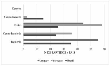 Por último, al analizar Uruguay, se percibe que el espectro ideológico remite al conflicto entre los partidos tradicionales (Nacional y Colorado), que componen el centro y el Frente Amplio, identificado como izquierda. A pesar del multipartidismo, estos partidos son la fuerza motriz del sistema partidario uruguayo. Debido a eso, sólo la izquierda y el centro se hacen presentes en la distribución de las ideologías en el Parlasur. Esta configuración da cuenta las expectativas de correspondencia con la coyuntura doméstica.