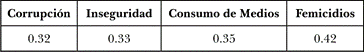 Para medir la controversia en los tópicos discutidos en los grupos focales de CABA (Corrupción, Inseguridad, Consumo de medios y Femicidios) tomamos las intervenciones de los participantes de los tres grupos focales. Es decir, por cada uno agrupamos en un mismo archivo las intervenciones realizadas y sobre eso calculamos el score de controversia. Los resultados fueron los siguientes: