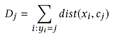 También definimos Dj como la suma de distancias entre los embeddings y sus centroides de esta manera: