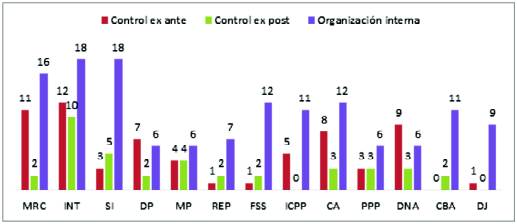 Se observa entonces que solo 21 de las 36 CE tienen un propósito de control según el criterio definitorio explicitado en la sección metodológica de este artículo, mientras que las 16 restantes fueron creadas con otros propósitos.