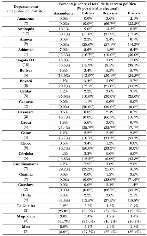 Keywords: Political careers, district magnitude, previous experiences, legislators, Colombia.