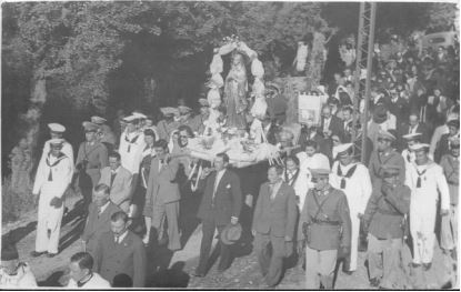Como hemos señalado, fue desde 1907 con la capilla y los salesianos definitivamente asentados (en 1914) que la advocación de la Inmaculada Concepción inició sus procesiones y fiestas marianas. El radio de peregrinación de esta etapa lo constituyó el ejido urbano de cara al lago, estructurado en forma de damero sin tener en cuenta la accidentada toponimia. Ya adentrado el siglo XX, la instalación de la aduana en 1920 y la creación del Parque Nacional entre 1922 y 193414 fueron el epicentro de la representación de la “Suiza argentina”, resignificada como una “aldea alpina” y motorizada por la actividad turística (Núñez, Matossian y Vejsbjerg, 2012). La escasa asistencia a las misas de la feligresía del poblado, a principios del siglo XX, relegó la “fiesta de la patrona del pueblo” al ámbito del pequeño templo de madera (Archivo Histórico Salesiano ARS/BB, 8/12/1917, f.87). En 1919 se inició el mes de la Virgen con la novena, las comuniones y una procesión, y fue en 1924 que llegó a reunir 300 personas (AHS ARS/BB, Crónicas de la Casa de San Carlos de Bariloche, 8/12/1924, f.138), un número nada desdeñable para una población estimada en 1.250 habitantes hacia 1910 y que se mantuvo en 2.500 habitantes hacia 1930 (Sánchez et al, 2007: 3). La procesión fue incorporando elementos de participación tales como la “estatua llevada en andas ricamente adornada con flores naturales” (AHS ARS/BB, 8/12/ 1928, f.40 y 41), la banda de música del pueblo, reemplazada en 1938 por la banda militar, altarcitos al costado del camino (AHS ARS/BB, 8/12/,1929 f.58), cofradías (San Luis, Hijas de María, Socias del Apostolado) y las mayordomas que acompañaban a la imagen (AHS ARS/BB, 8/12/1934, f.117). La presencia de las “fuerzas del orden”, es significativa desde 1940 (AHS ARS/BB, 8/12/1940, f.243).