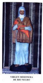 Por su parte, la Virgen Misionera presenta desde su concepción una impronta “popular” a través de una trama simbólica iconográfica y la significación que los creyentes le otorgan (Nicoletti y Barelli, 2018). La Virgen Misionera, a diferencia de otra imagen mariana de identidad patagónica, la Auxiliadora de Don Bosco (Nicoletti, 2012), presenta una imagen sumamente sencilla, terrenal, claramente posconciliar con “conciencia histórica” (Azcuy, 2001). El proyecto de crear una imagen mariana que representara de alguna manera a la Iglesia rionegrina surgió a partir de la experiencia misional y el recorrido territorial del obispo por toda la diócesis. La Misionera nació en tiempos de dictadura militar, como Virgen peregrina, surgió de la consulta popular y se materializó como imagen de bulto representando al pueblo rionegrino. Su peregrinar en ermitas, santuarios y parroquias logró integrar las subregiones rionegrinas y resignificar la matriz social de la provincia en sus devotos (Nicoletti y Barelli, 2018).