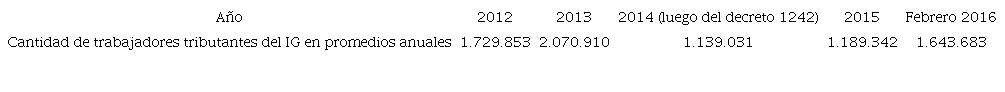 En el marco de un conjunto de decretos de necesidad y urgencia que el gobierno de Macri instrumentó en los primeros 100 días de su gobierno, el 18 de febrero de 2016 se anunció la suba del MNI a 30.000 pesos en bruto26. Así, los asalariados con hijos comenzaban a pagar el IG a partir de 25.000 pesos de bolsillo, en tanto que los solteros lo harían a partir de 18.880 pesos netos. La medida no alcanzó sin embargo a las escalas y las alícuotas que afectan al tributo, modificaciones que, según el presidente, serían efectuadas en el 2017. Tampoco se anunciaron cambios para los monotributistas27.