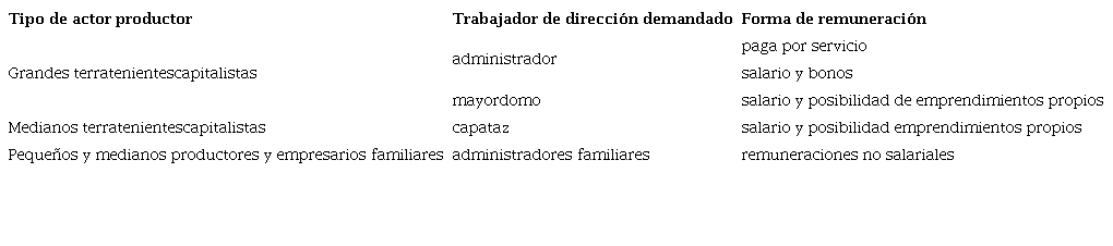 De esta manera, a partir de la demanda de los terratenientes grandes y medianos, y de su progresiva incorporación en las unidades familiares, el universo de trabajadores de dirección demandados durante el siglo XX en el agro pampeano se configuró tradicionalmente de la siguiente manera: