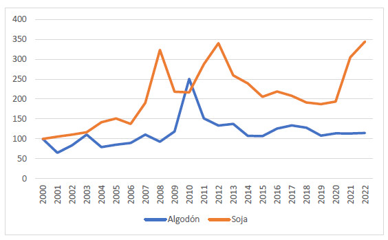 3. La dinámica productiva de los cultivos de soja y algodón en la provincia de Chaco