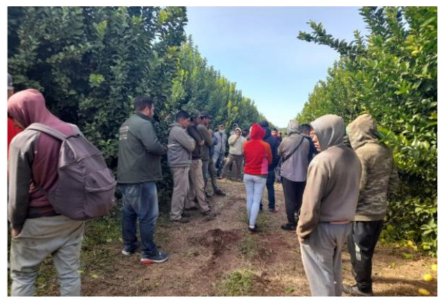 En cuanto al lugar de trabajo, las fincas que dependen de las empresas citrícolas, a diferencia del predio fabril donde se emplean las astilleras, no cuentan con comedores ni con espacios de cuidado o formación. Cada cosechero/as lleva su propia vianda, sin tener heladeras donde poder guardar la comida hasta el horario del almuerzo.