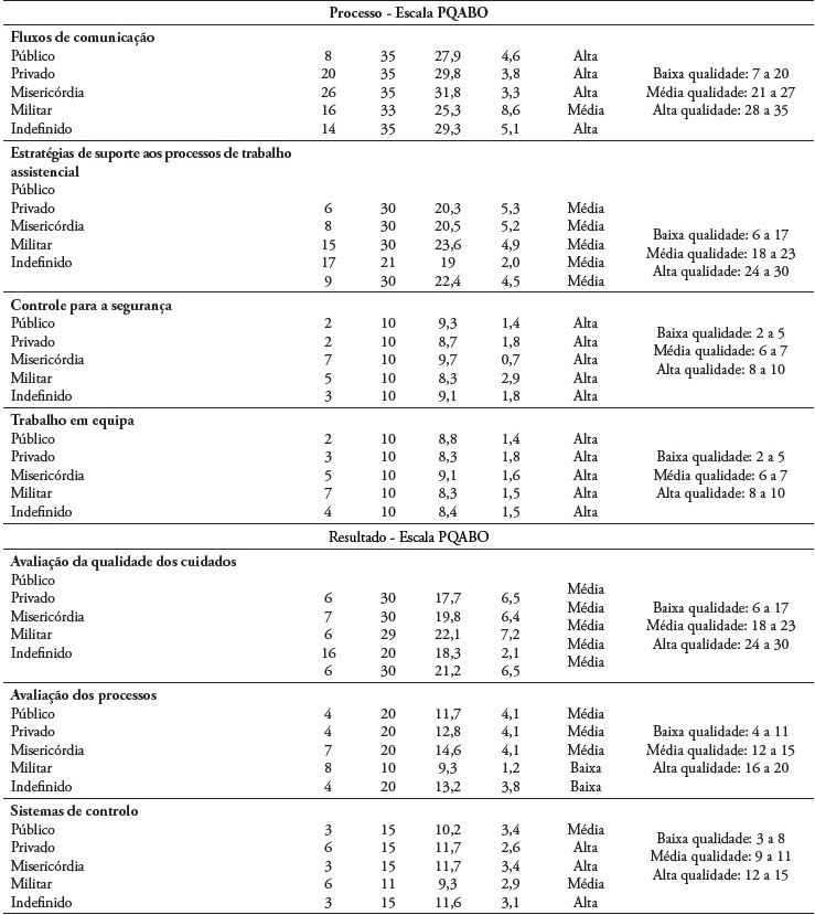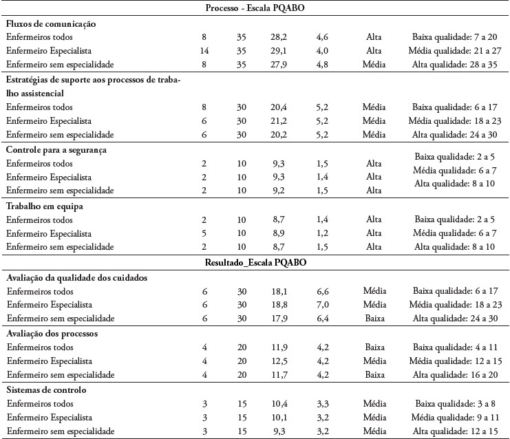 Conclusion: The evaluation of quality is essential because of the important role that nurses can play in these settings, namely in planning corrections and improvements for the quality and safety of care.