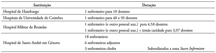 Neste livro, Costa Simões, faz expressamente referência a dotações de pessoal para o Hospital Militar de Bruxelas, para o Hospital de Santo André em Génova, e para o Hospital de Hamburgo. Em relação aos hospitais de Hamburgo e Bruxelas, calcula o rácio de enfermeiros por doentes, sendo que no segundo agrupa aos enfermeiros outros cuidadores e as irmãs da caridade, de forma expressiva, compara o que encontra, com o que prevê, de dotação para os HUC. Na realidade, a diferença entre o que encontra nos hospitais referidos e o que prevê é de uma ordem de grandeza considerável. De notar, que Costa Simões, refere para o Hospital de Hamburgo a existência de serventes para coadjuvar os enfermeiros, mas em número não determinado.