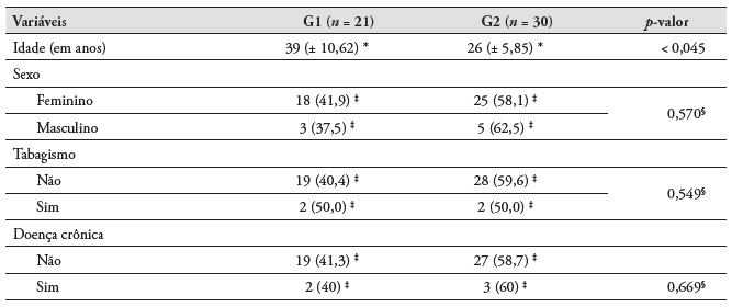 As características sociodemográficas dos dois grupos de trabalhadores estão apresentadas na Tabela 1.